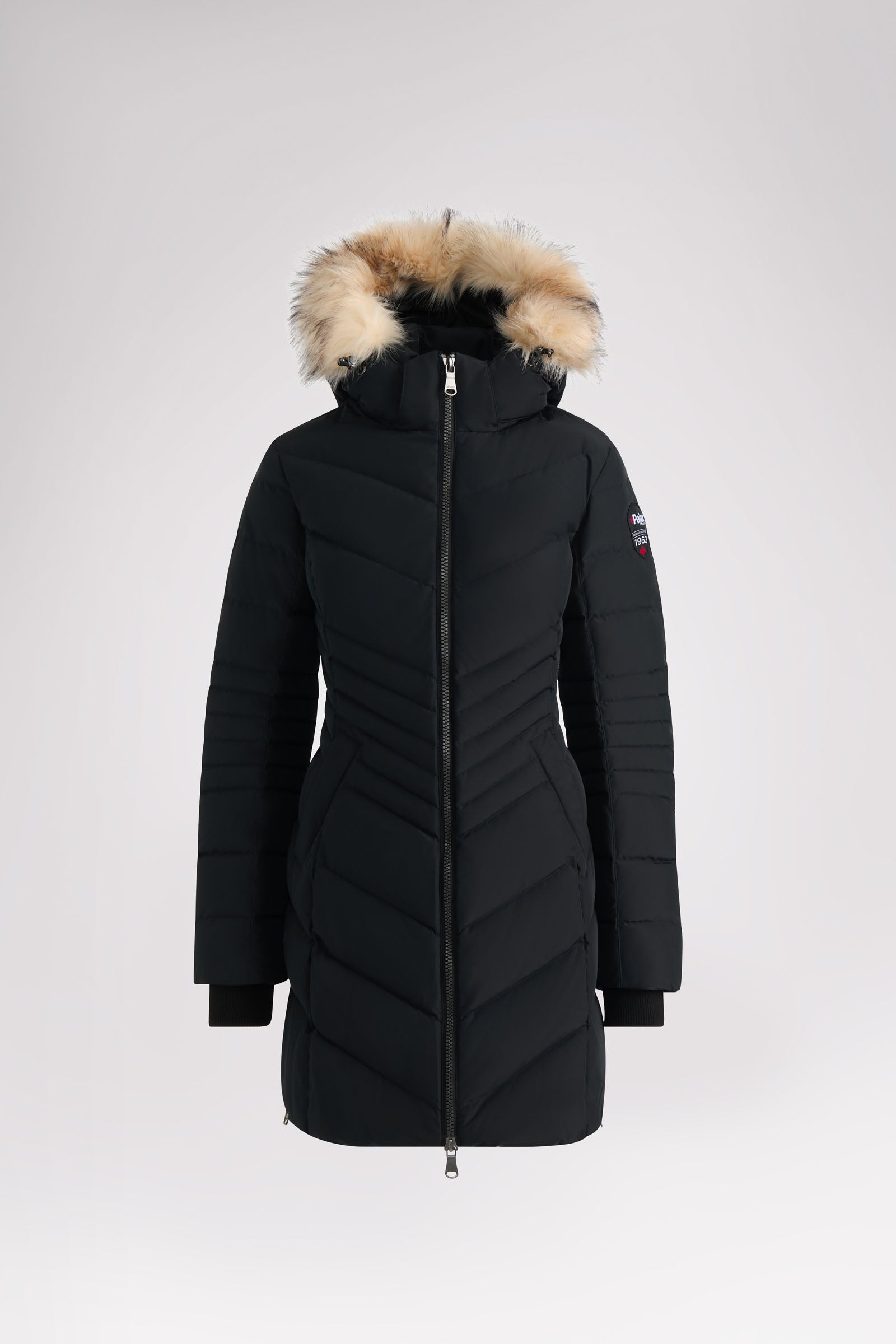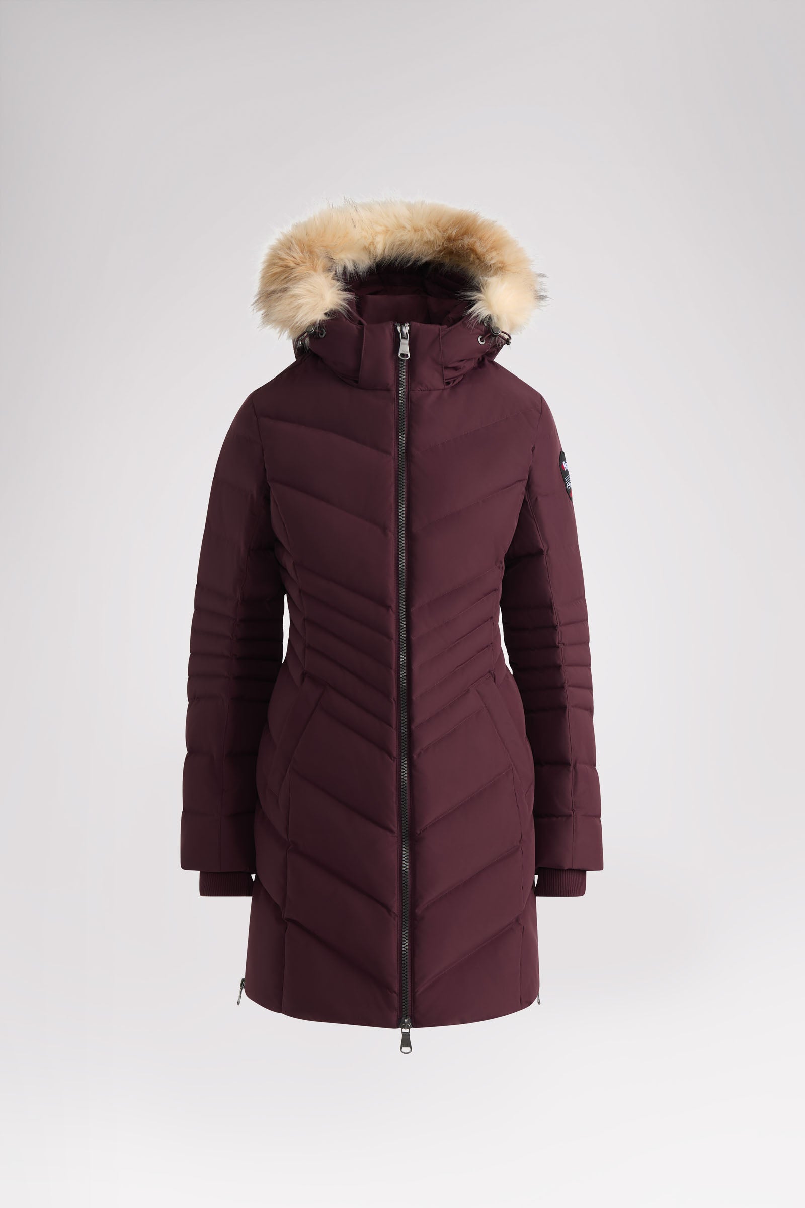 Puffer matelassé en chevron avec capuchon amovible et contour en fausse fourrure. Équipé de poches à boutons-pression sur les deux côtés et manchettes tricotées. • Coupe core • 3-Layer Bonded durable 5000mm/5000mm, membrane laminée qui divise la couche externe et le tricot léger et respirant pour prévenir la pénétration de l’eau et du vent • Couche externe : 100% Polyester | Couche interne : 100% Polyester • Duvert de canard | Construction à quatre couches • Imperméable • Lavable à la machine • Longueur totale : 36 po Indice de confort de -30°C Le mannequin fait 173 cm / 5 pi 8 po et porte la taille M