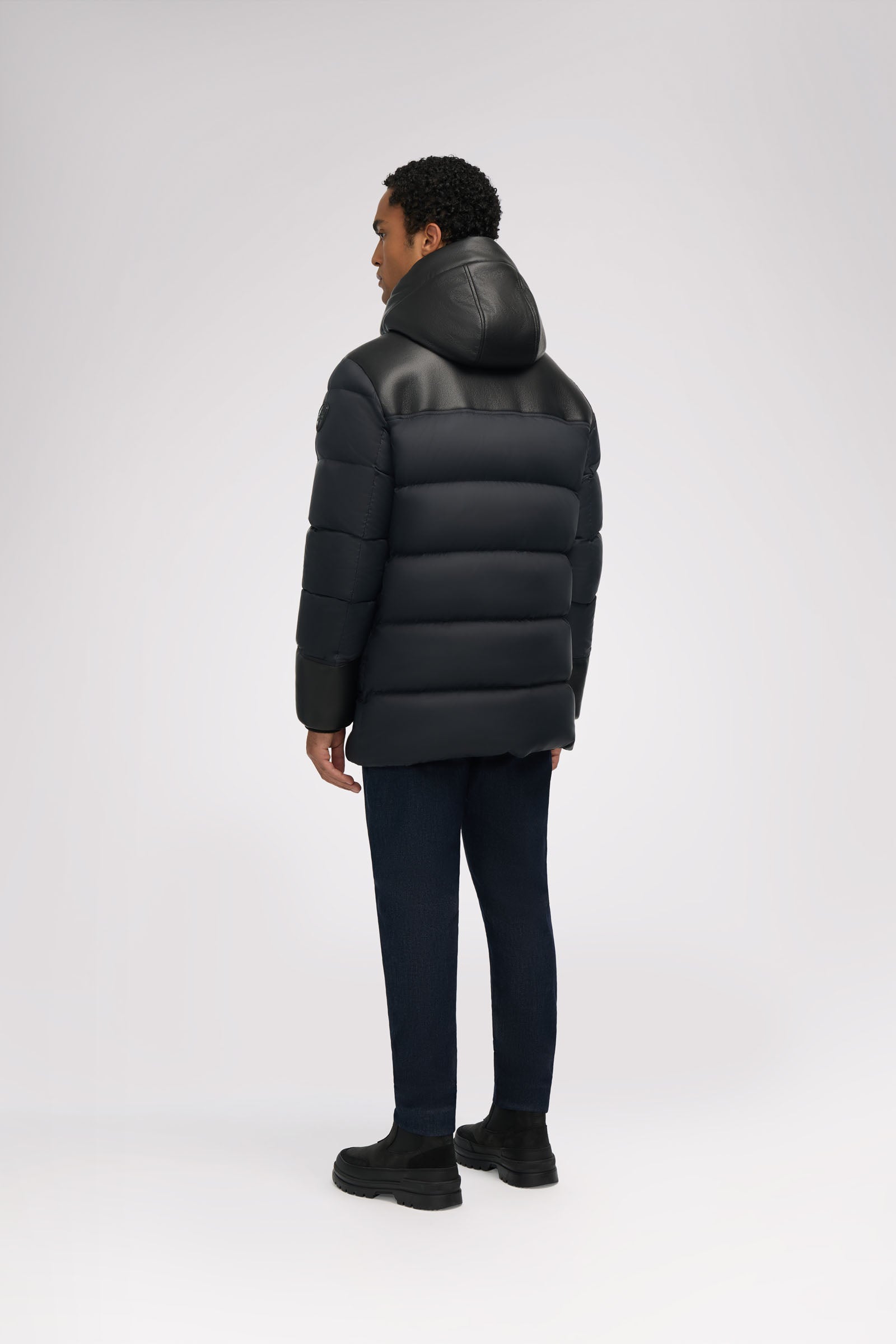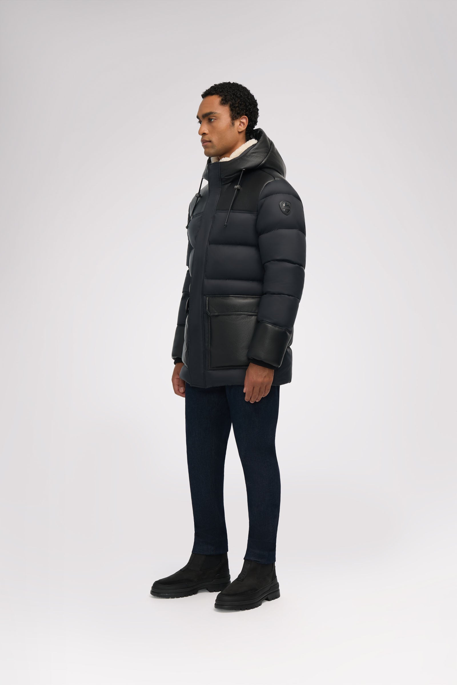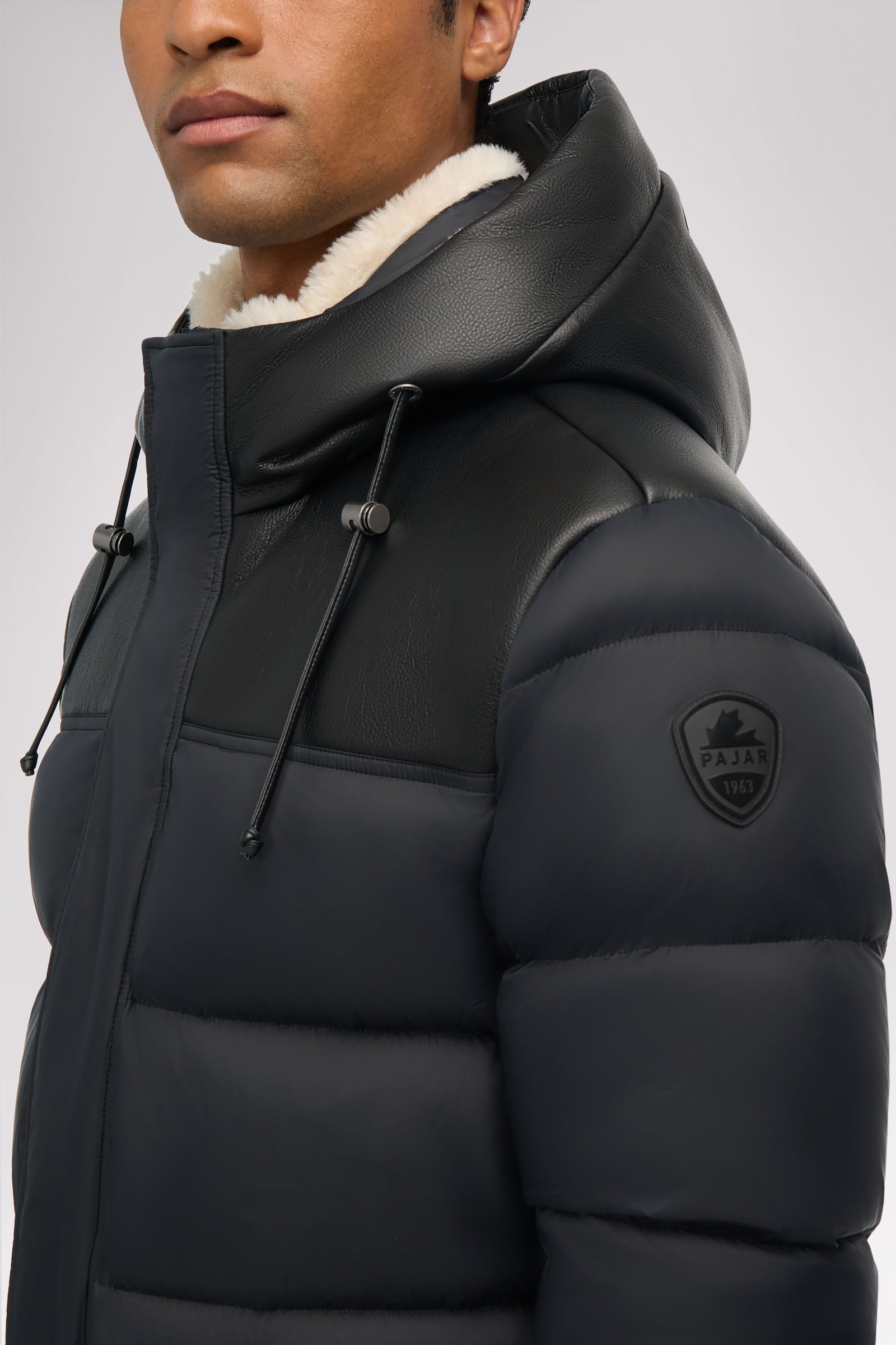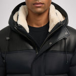 Puffer en fausse peau de mouton pour homme avec capuchon fixe