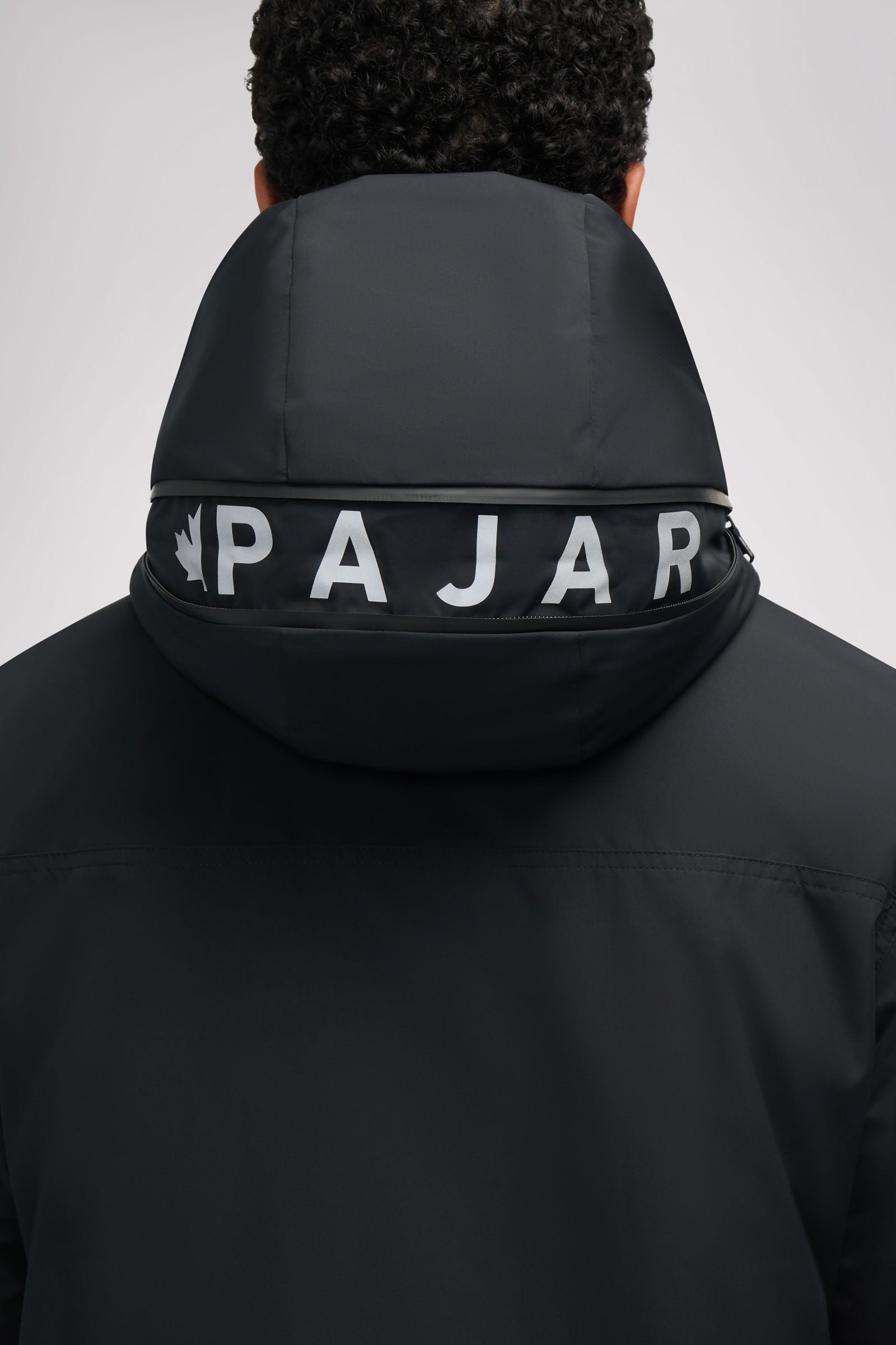 • Fixed hood w/zipper opening reflective logo insert